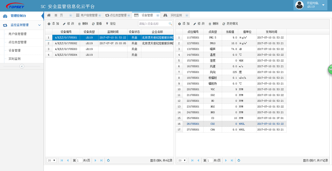 重大危險(xiǎn)源在線監(jiān)控及事故預(yù)警系統(tǒng) PC端(市級) |