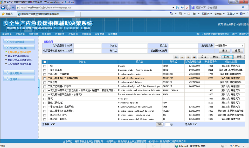 按照【GB 16483-2000 化學(xué)品安全技術(shù)說(shuō)明書(shū)編寫(xiě)規(guī)定】進(jìn)行危險(xiǎn)化學(xué)品信息采編,并導(dǎo)入常見(jiàn)化學(xué)品3000多條數(shù)據(jù)。