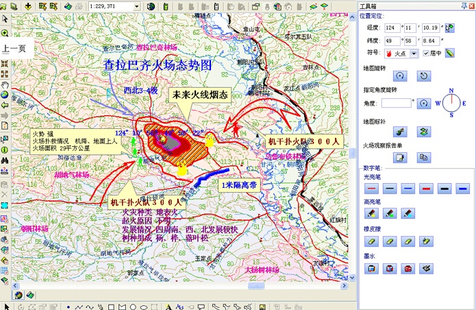 方便了觀察員在空中的作業,觀察員可以用標繪儀的“磁筆”把要反映的災區信息標繪在態勢圖上。方便專家標繪火場。