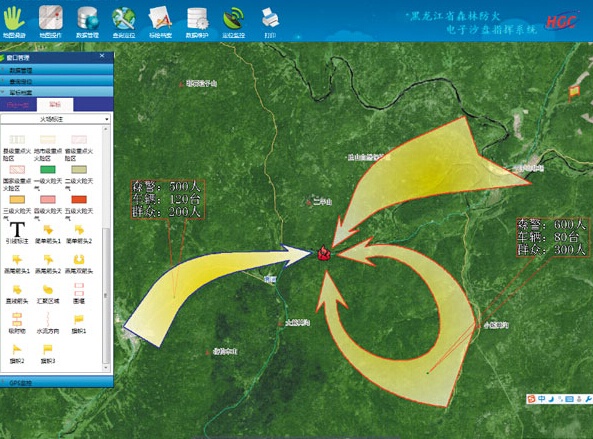 偵查標繪系統可采集GPS信號,實現了在電子地圖上進行實時領航。觀察員可隨時在屏幕上看到自己的位置、坐標、航跡、 航線、航向、高度、速度、偏航距離等領航信息,又可直觀地在電子地圖上看到所在位置周圍的地物、地貌信息。標繪系統方便簡單的操作步驟,更適合實戰應用。同樣,救援隊伍亦可隨時知道自己的準確地理位置,并且指揮員可以利用GPRS和CDMA無線網絡,將標繪好的火場態勢圖和文字形式的火情報告及時上傳到上級應急指揮部門。