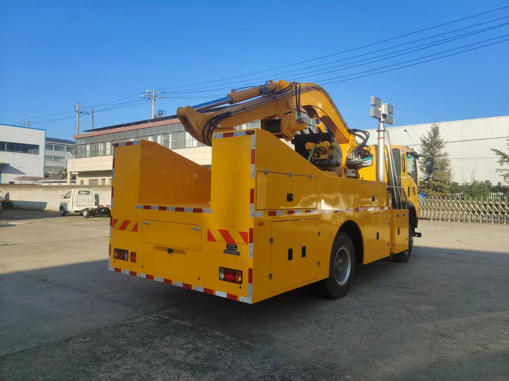 配備作業液壓支腿,作業時防止車輛發生傾翻,可選配無線遙控,保證人員遠離車輛進行作業。