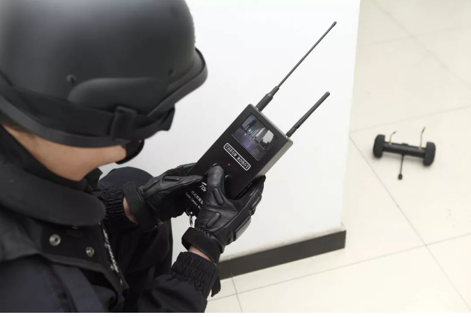 拋投機器人是一款堅固的便攜式裝置,可控拋投機器人的移動,也可從控制器上獲取畫質清晰的現場視頻。手柄輕巧可用單手來操作。部署裝置所需的總時間不超過20s。連接兩個天線,打開遙控器,選擇所要的視頻頻道即完成。拋投機器人的移動,是由位于遙控器中央的,可有大拇指操控的,一個簡單的操縱桿來進行控制的。