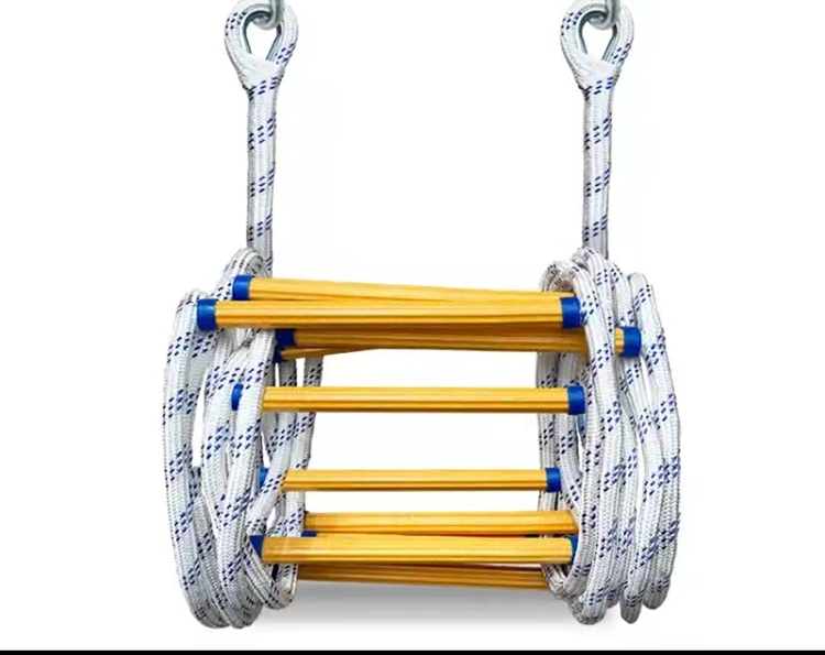 救生軟梯是一種用于營救和撤離火場被困人員的移動(dòng)式梯子,可收藏在包裝袋內(nèi),在樓房建筑物發(fā)生火災(zāi)或意外事故時(shí),樓梯通道被封閉的危急情況下,是進(jìn)行救生用的有效工具。