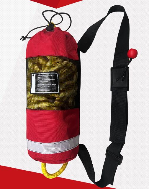 拋繩包采用網眼設計,配備與救生衣連接的搭扣。漂浮繩為包芯繩結構,繩體采用圓形高性能浮力材料,主承重部分為連續纖維制成,具備反光功能。