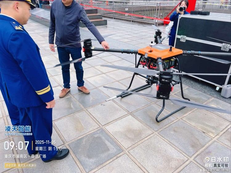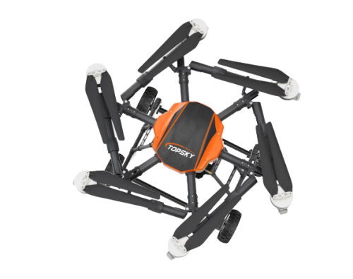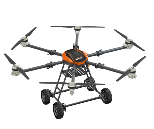 本陸空兩棲無人機平臺為北京凌天智能裝備集團研發的集多旋翼無人機與陸地行駛系統于一體的陸空兩棲無人機平臺(多用途偵檢無人機),采用六旋翼機身設計,配備可快拆的陸地行駛系統,能夠空中飛行與地面行駛兩種模式間自主或受控切換,既能空中飛行,又可陸地行駛。載重大,續航長,并且機體折疊標準化負載接口、集成航電系統、核心傳感器雙冗余備份系統。搭載長距離實時通訊鏈路,實時傳輸現場環境數據及無人機飛行數據。配備智能控制系統,可滿足多種場景和多種方式的作業需求。本陸空兩棲無人機平臺可適應復雜多變的環境與任務需求,極大地擴展了傳統無人機的作業邊界??纱钶d多種載荷,如:四光吊艙、氣體檢測儀、喊話器,滿足環境偵查、應急教援、安全疏導、氣體檢測等不同場景的行業應用。