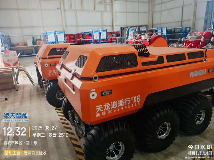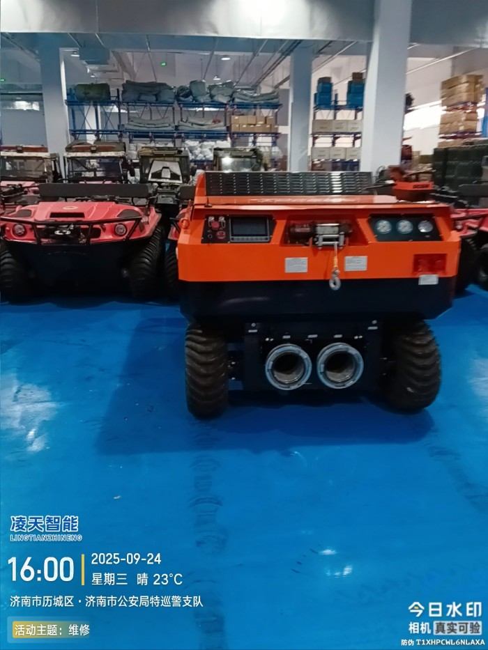 水陸兩棲 采用6×6輪式+履帶底盤,液壓驅(qū)動,水陸兩棲,可全地形行駛。可在水上漂浮行進,適合多種救援場景,輪胎+履帶兩用底盤(履帶可快速拆裝)。