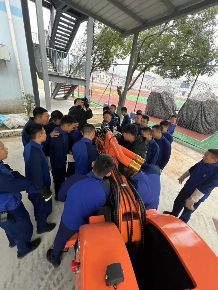機械臂的未端設置可快速換裝其他液壓破拆工具頭的接頭,實現多功能作業。包括推鏟、液壓錘、液壓抓、挖斗、盤鋸等相應破拆工具。