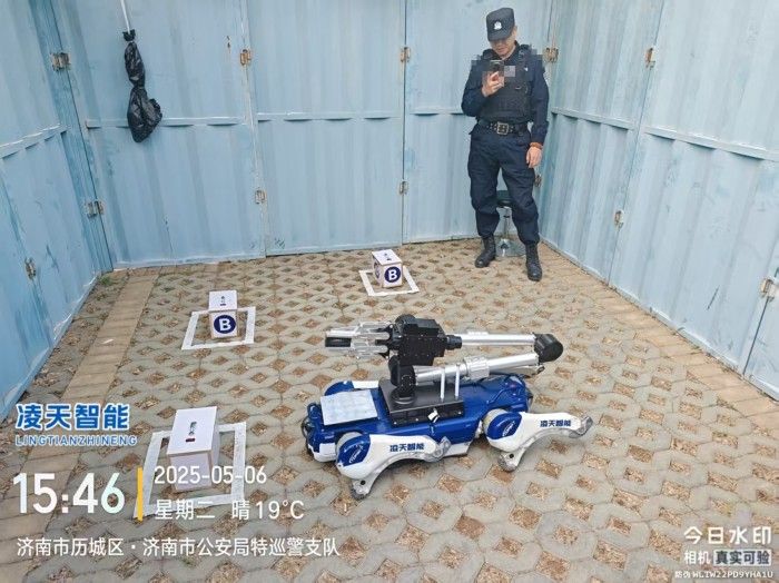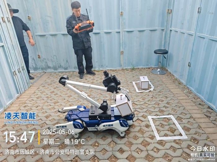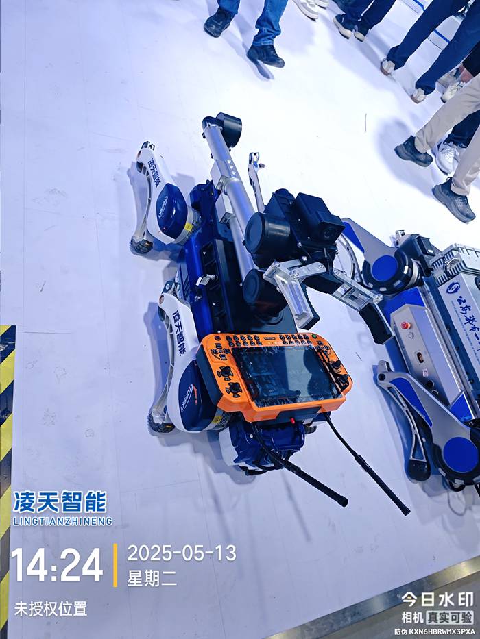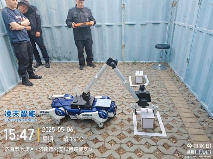 6自由度排爆機械臂能實現不同角度旋轉,最大可抓舉10kg的重物,機械臂裝載爆炸物銷毀器,可現場摧毀爆炸物,四足式底盤,能適應各種地形快速作戰部署。