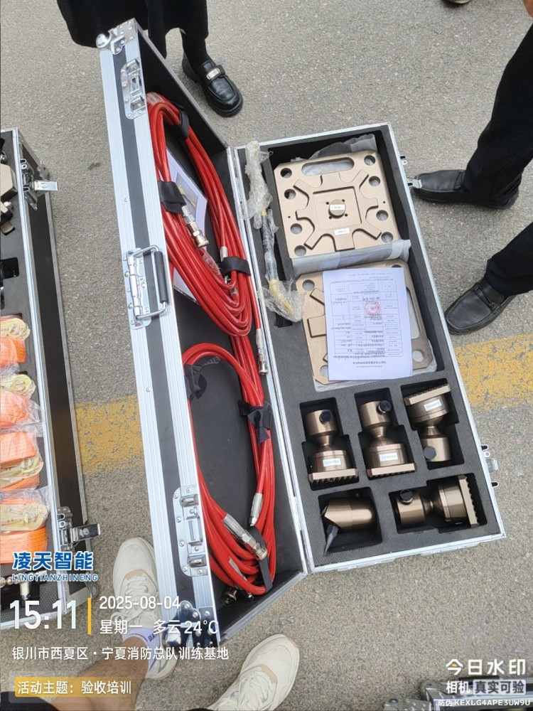 重型支撐套具支撐套具采用材質選用高強度、輕型航空鋁合金,所有部件經陽極涂層處理,以降低導電率,增加強度和壽命,安全系數4:1;支撐柱采用精密的雙頭直角螺紋支撐桿,可手動或氣動快速支撐,采用直角內螺紋螺母手動鎖緊,并可借助勾頭扳手進行微調,微調精度達到1mm,可垂直、水平和斜支撐操作。適用于地震、塌方、各種交通事故處理等現場的支撐工具。支撐柱可鎖緊在任何高度,垂直頂升力13.5噸,單根縱向靜態承載能力26噸。